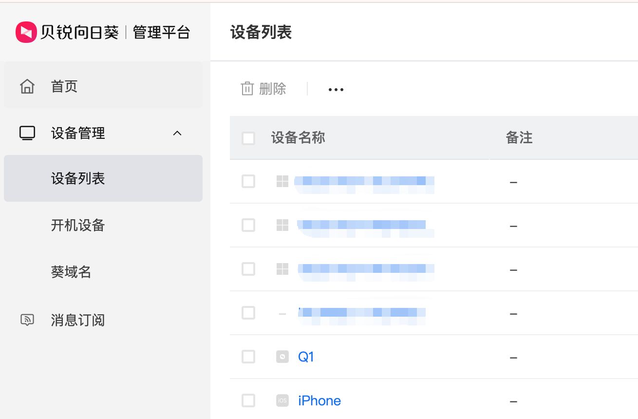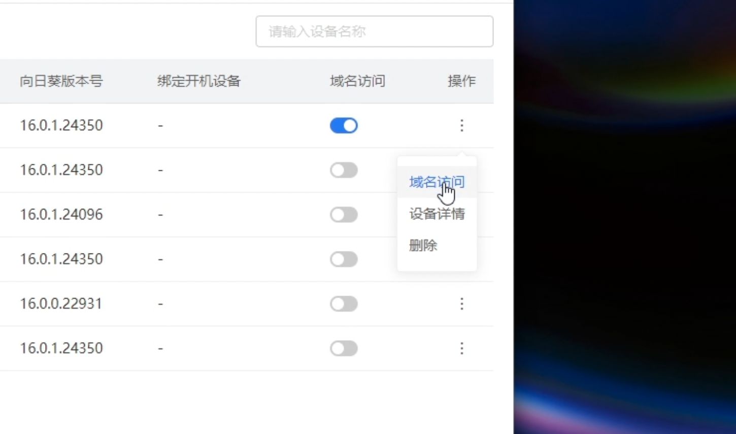 - 在 设备管理 → 设备列表 中,找到目标设备并开启域名访问;