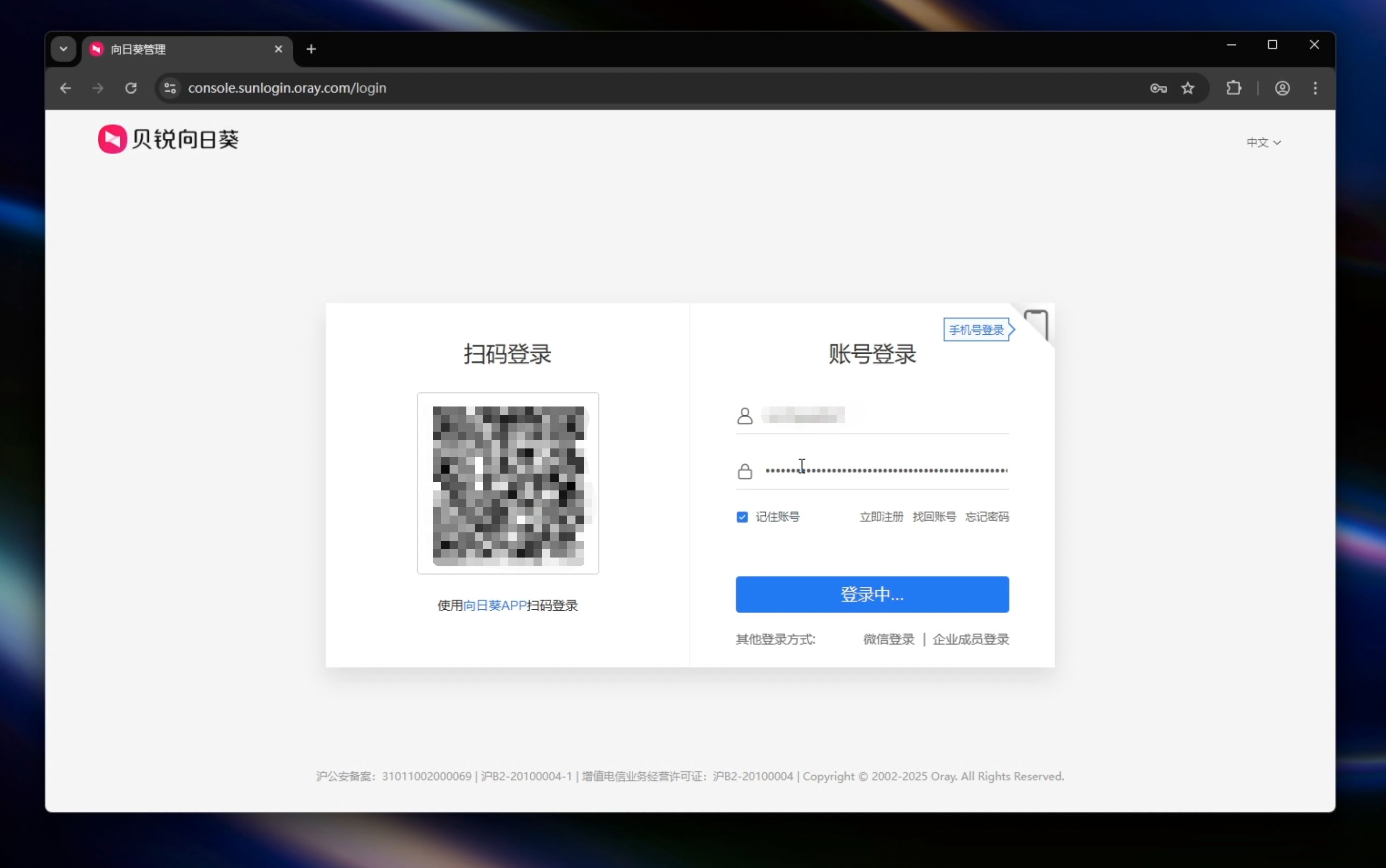 - 通过向日葵客户端点击【葵域名访问】按钮进入官网,或直接登录向日葵管理后台;