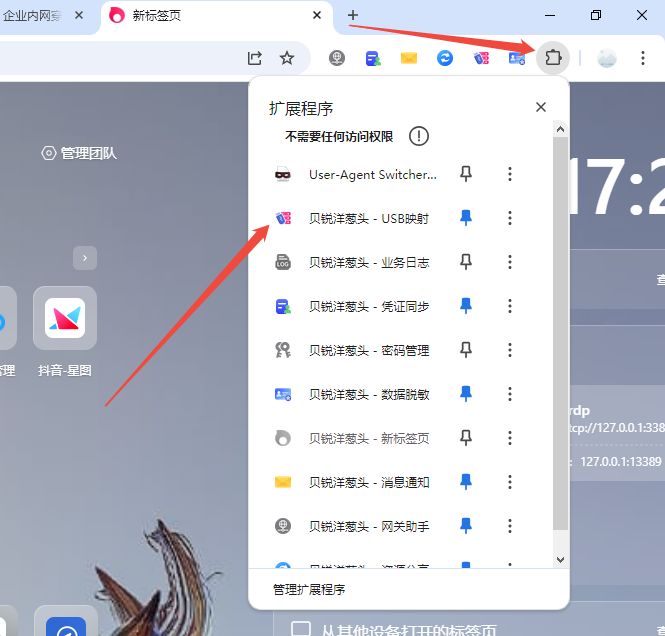 成员登录洋葱头后,在右上角的插件管理器中找到“USB映射”插件,点击后选择安装一个本地的驱动程序,安装成功后刷新插件,即可查看被授权的加密锁。选择具体的锁,点击“接入”即可。插件显示“已接入”表示已成功远程映射接入。