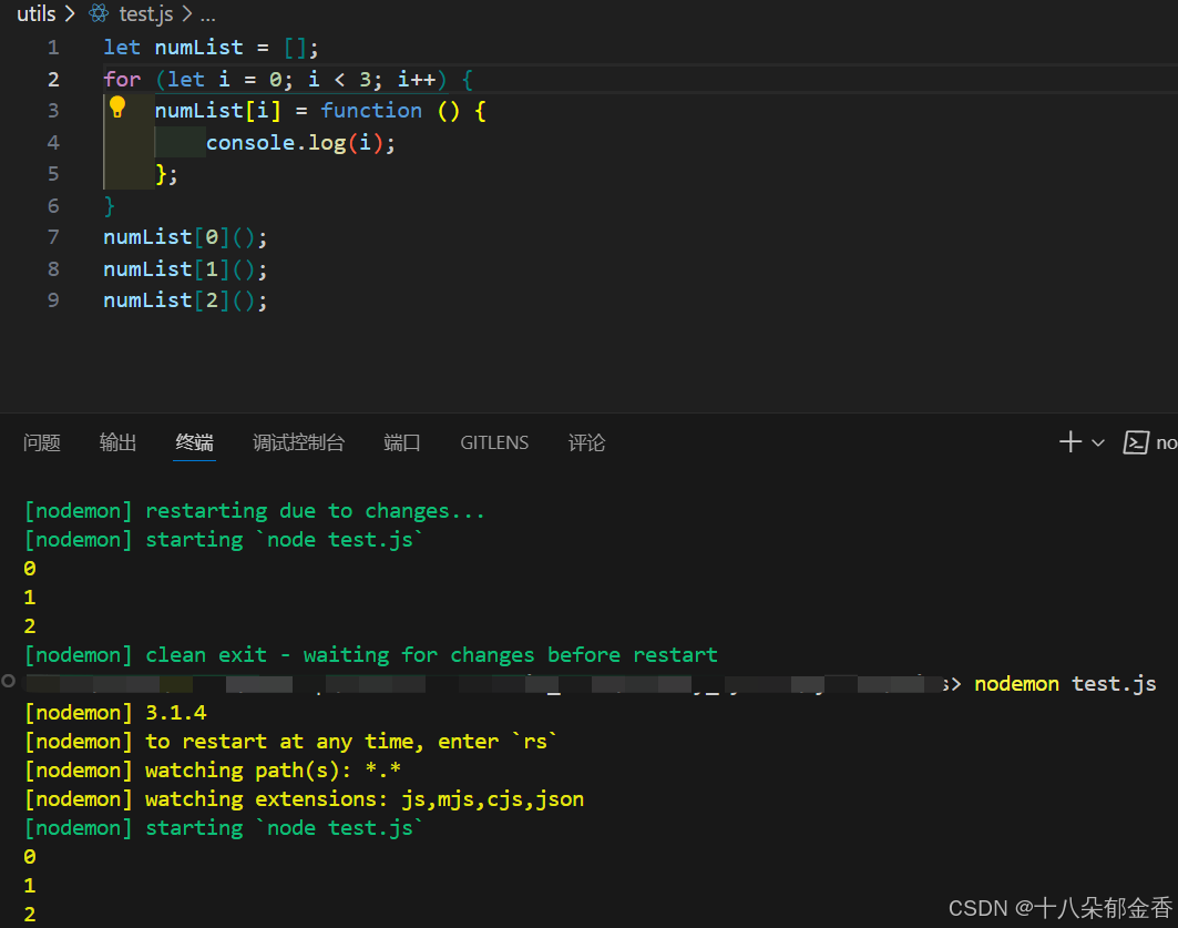 在现代 JavaScript(ES6 及以上版本)环境下,这段代码会依次打印出 0、1、2。这是因为let声明的变量具有块级作用域,每次循环都会创建一个新的块级作用域,每个作用域中的i都是独立的。当把函数赋值给numList[i]时,函数捕获的i是当前循环迭代中块级作用域内的i,所以在调用numList[0]()、numList[1]()、numList[2]()时,会分别打印出对应迭代中的i值。