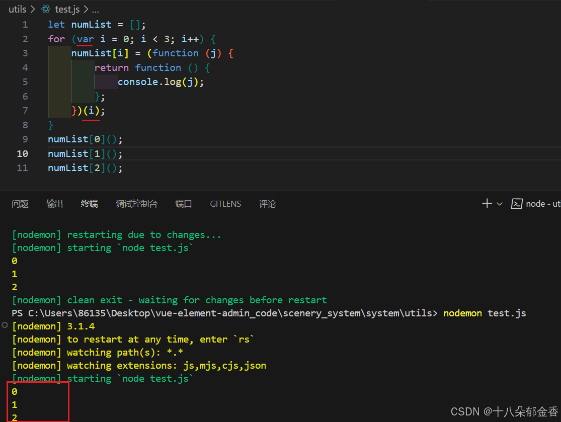i值作为参数j传递给它。这个匿名函数的活动对象中保存了传入的j,当内部返回的函数执行时,会从这个匿名函数的活动对象中找到对应的j值,从而正确打印出0、1、2。在 ES6 及以上环境中,虽然