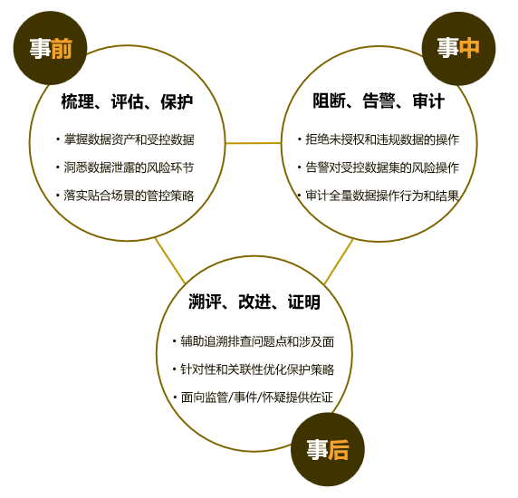 提供从敏感数据发现、识别、保护、监督到治理的一体化数据安全能力,场景式编排数据保护策略,实现数据安全能力组件的协同。