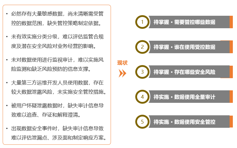 陈年老系统、多年老代码、缺乏规范的开发、散布在不同业务下的不同数据库,让事后排查安全事件消耗大量人力。同时,外部合作伙伴的数据合作也不会由于数据流通让责任转嫁,合作伙伴的数据提供以及数据保护依然是重要的一环。数据安全事件发生后,安全团队能否立刻开展追踪溯源工作,复原安全事件的整个过程,找到造成数据泄露的原因成为不确定因素。
