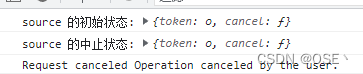 当我们去控制台看的时候发现source状态的时候发现中断前后并没有改变。所以axios给我们提供了一个isCancel()方法给我们进行了判断,isCancel中的参数就是source.cancel()中的。
