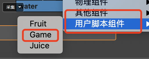 先将脚本组件与节点关联起来,选择Canvas根节点,在右侧属性检查器中添加组件,然后选择刚才创建的这个Game组件
