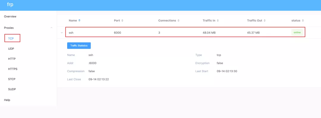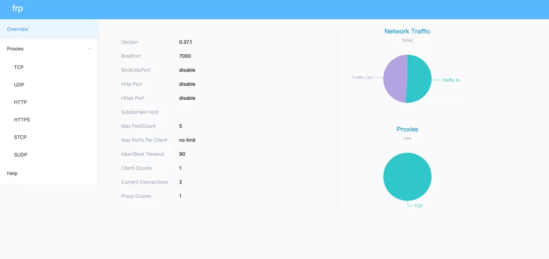 管理界面实时查看 Frp 的运行状态及代理统计信息展示