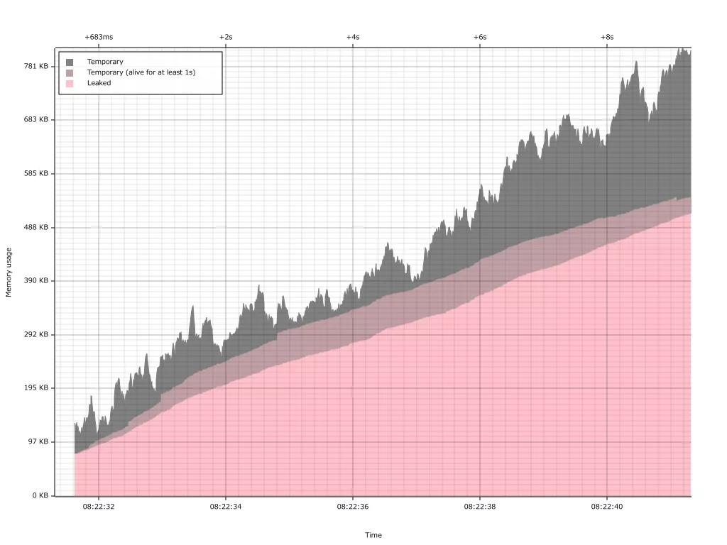 使用定制的堆栈信息展示实现,这使得它比其他类似工具更高效,在某些情况下可能快几个数量级