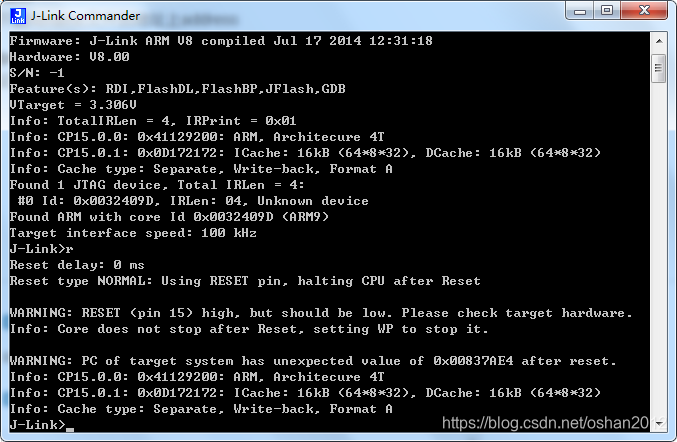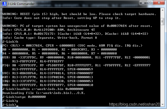 下载leds.bin 文件,在J-Link Commander执行以下命令: