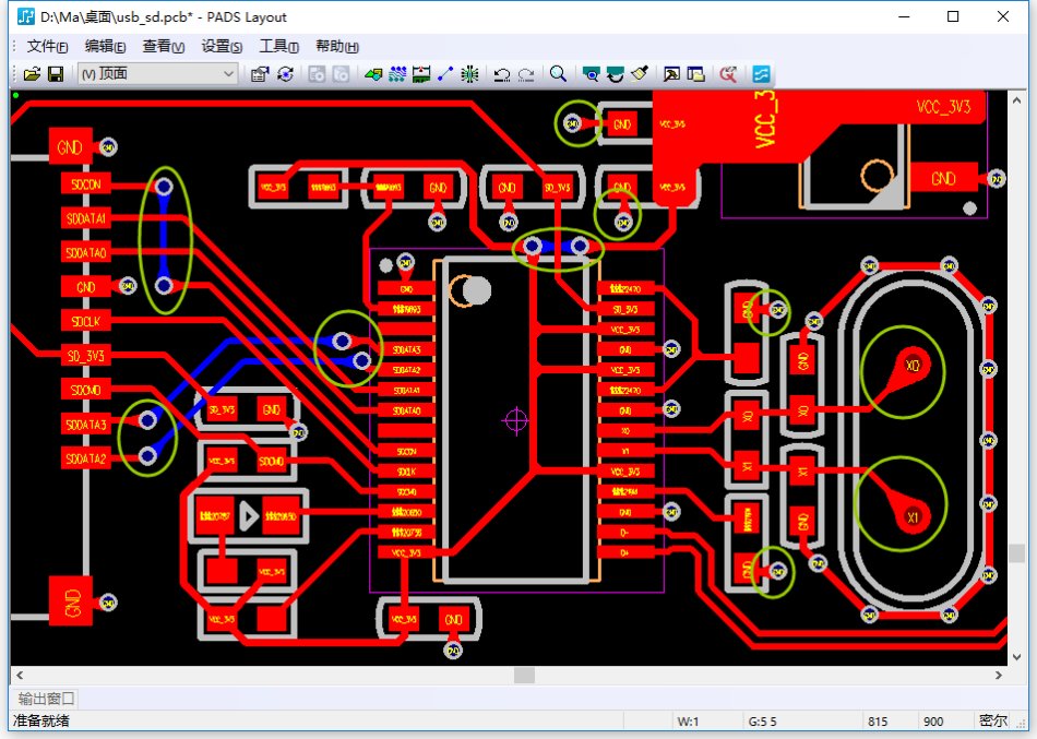 7、设置完成后点击确定,回到主界面中,可以看到能生成泪滴的焊盘都已经生成有了泪滴,如图7