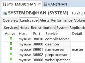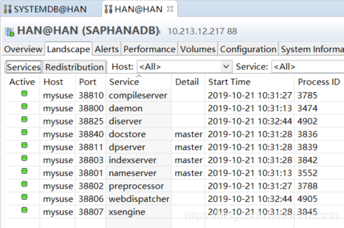 2、HANA STUDIO里可以看到有2个服务卡在那里,停不下来,KILL 杀掉一个,HANA服务会很快停下来。