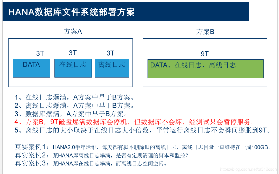 方案A把9T分成了3个区,分别存放HANA的三种落地文件。