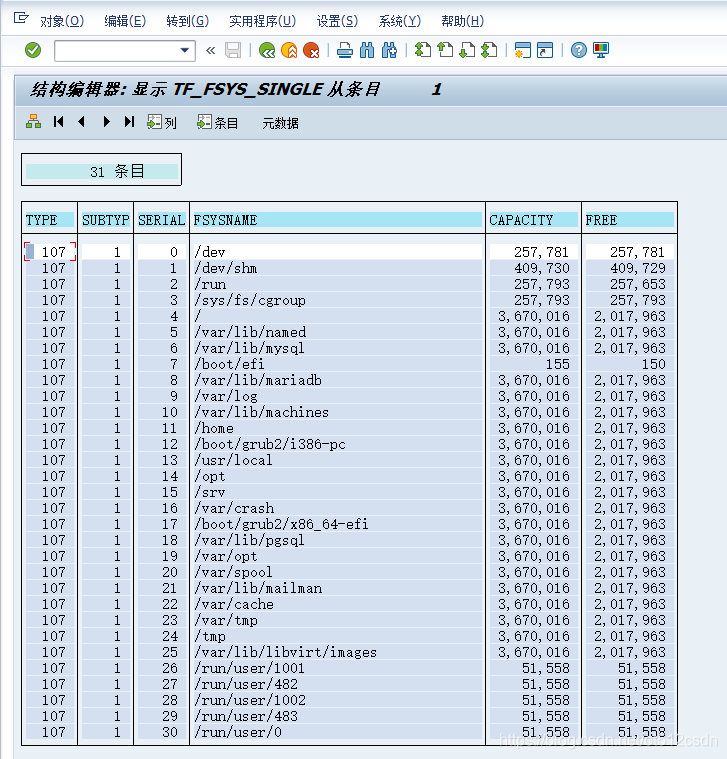 AL06有一个统计OS文件系统的功能,是调用了一个系统函数:GET_FSYS_SINGLE