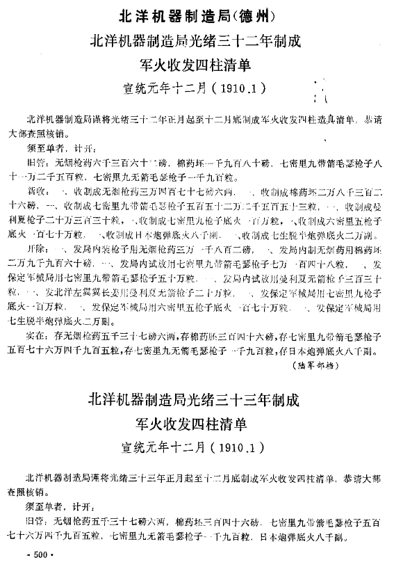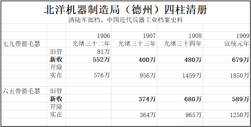 整理的山东德州北洋机器局,开厂以来1906~1909铜壳产量: