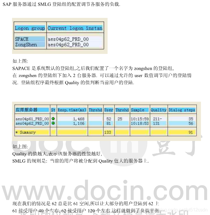可以在SMLG事务代码中设置,每个服务器的负载情况,比如你觉得1号服务器上有数据库了,资源比较紧张,你可以在这里设置,把用户都引导到2号服务器上。