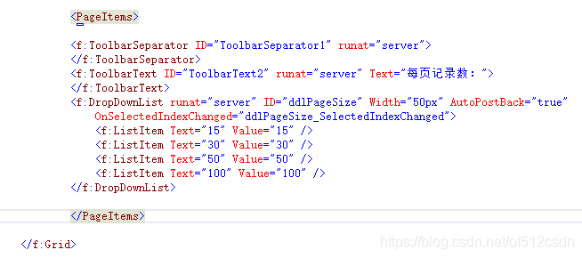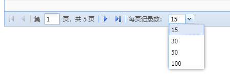 1、先在HTML中定义网格控件可以选15、30、50、100条每页四种选项。