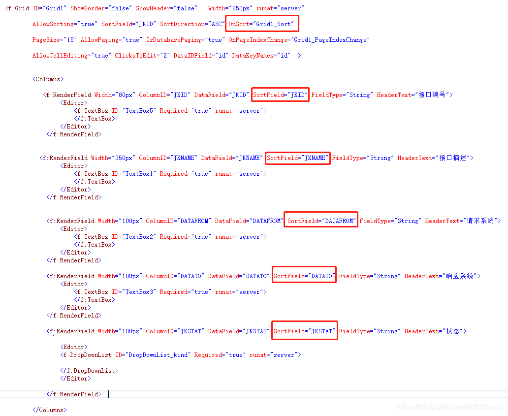 1、在HTML中指定网格控件的排序响应函数Grid1_Sort()