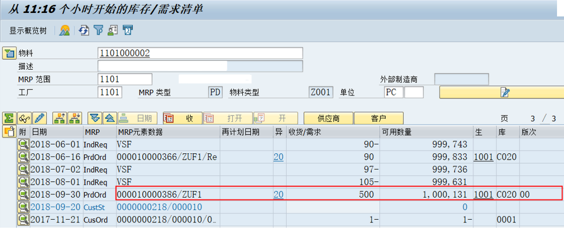 物料版次也对MRP计算产生了影响,当新的物料版次变得活跃时,它将在MD04屏幕中显示。新创建的采购需求或计划行,在物料版次变更的有效日期之后,将会带来新的版次编号。