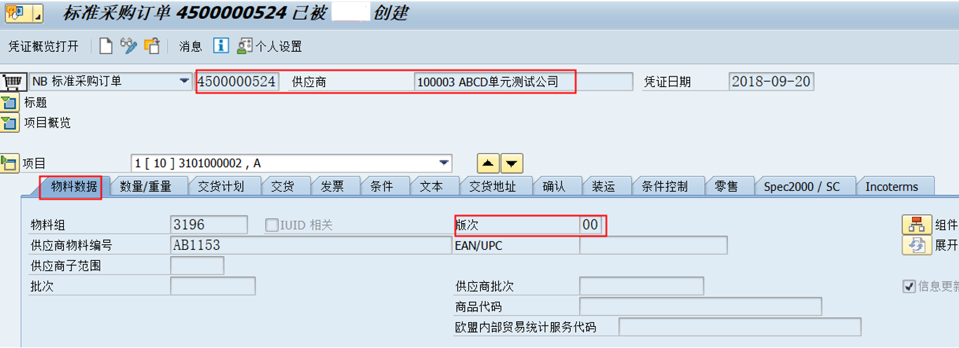 PO 采购订单根据凭证日期来确定采购行项目的物料版次