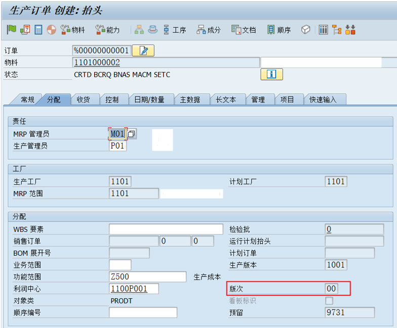 1.PP模块:生产订单/计划订单-COOIS-物料版次