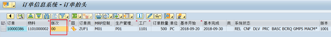 COOIS中能正常显示生产订单对应物料版次