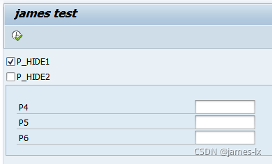 这篇博客介绍了如何在SAP ABAP中通过参数和选择屏幕事件来控制界面元素的显示与隐藏。用户可以通过勾选 checkboxes p_hide1 和 p_hide2 来分别隐藏第一组和第二组控件,实现动态界面调整。