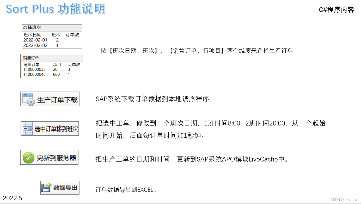 使用SAP APO 模块系统自带功能,调整整车的生产日期、时间是一件很费时的工作,所以我们开发了:SAP APO Sort Plus 整车调序增强程序,它的基本功能就是帮助生产计划员,在SAP系统中快速调整汽车在生产线上生产的日期及顺序。