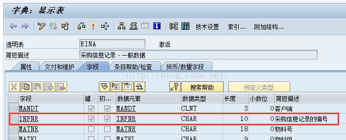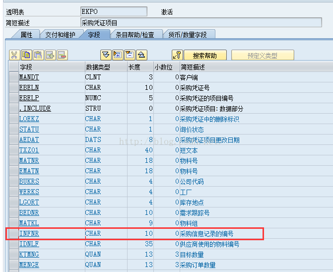 比如:EKPO(采购订单行项目)和EINA(采购信息记录)表。