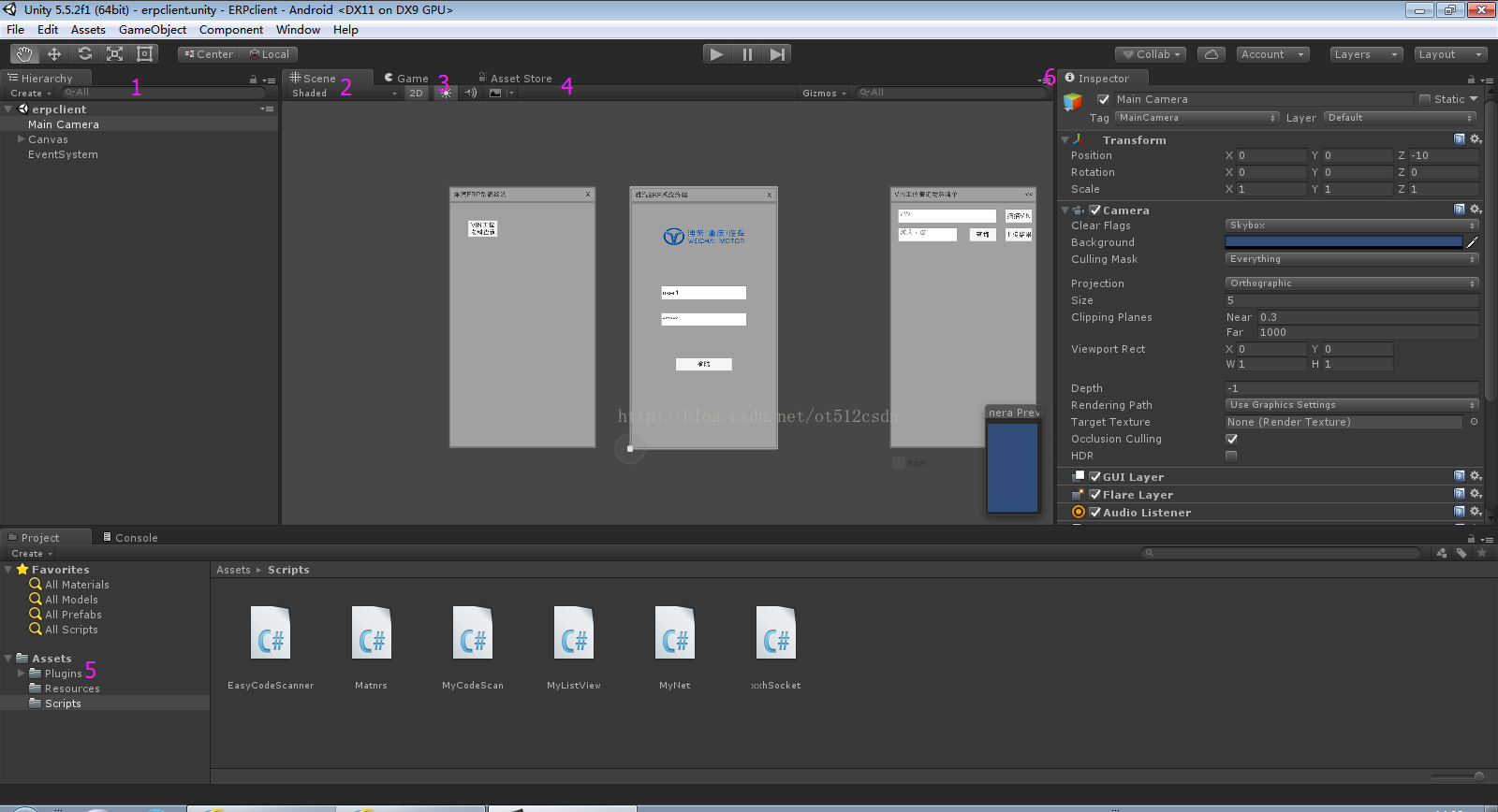 一开始,Canmera摄像机, Canvas桌布,Game 游戏屏幕,Scene场景 这4个东西绞在一起,居然让执行程序控制要显示的区域都做不了。