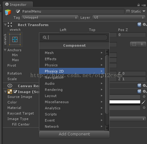 (6 )Inspector 属性窗口,这个很好理解,可视化编程都有的东东。