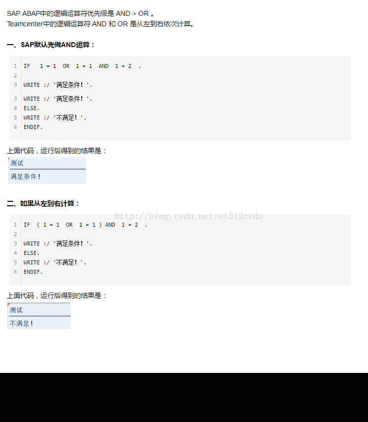 逻辑运算符,TC中AND和OR无优先级,从左到右依次读取; SAP中AND高于OR.