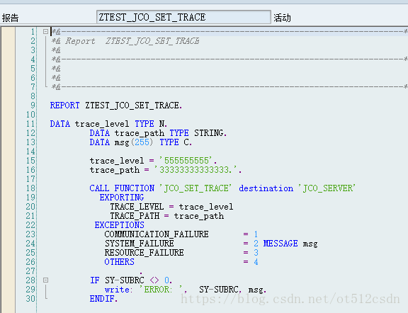 1、注意看这个语法,CALL FUNCTION 'JCO_SET_TRACE' destination 'JCO_SERVER'