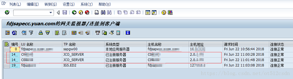 事务代码SMGW,可以看到JAVA和SAP建立的长连接。