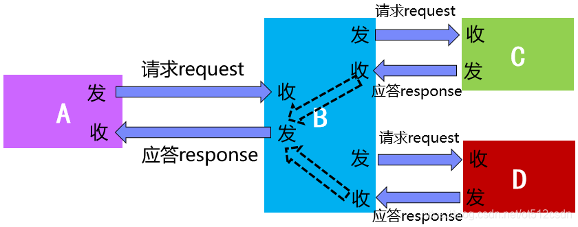 同步(有“发出和接收”的request数据链路,还有“收到返回”的response应答数据链路)