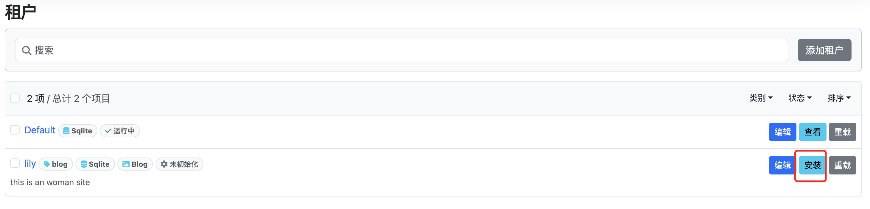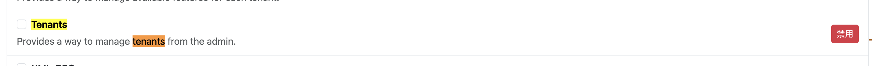 同样,在“功能”页面,搜索找到Tenants模块,点击“启动”。