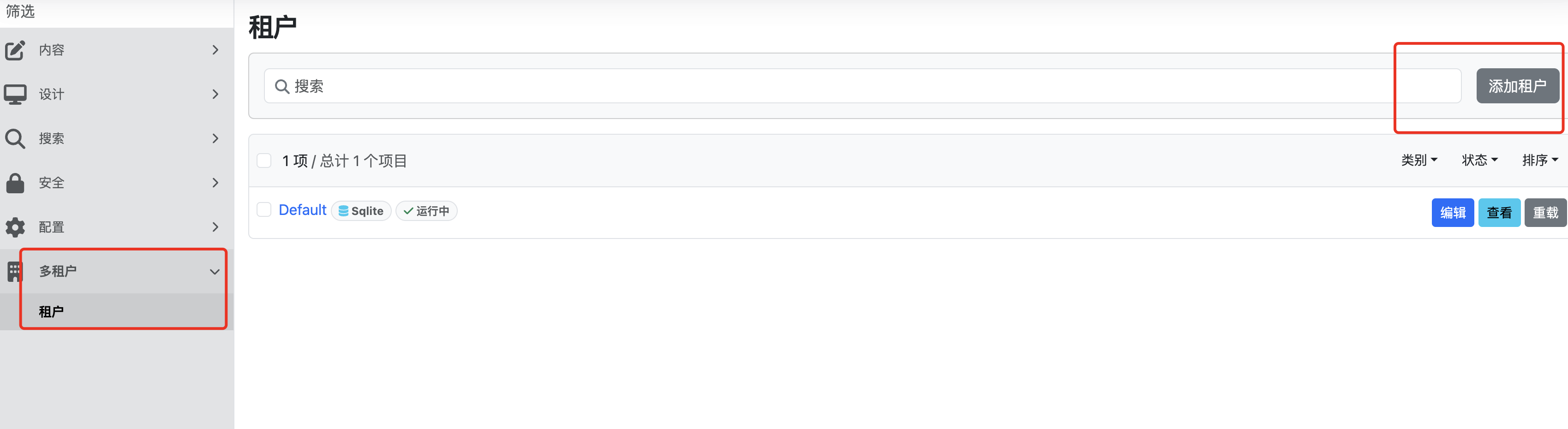 一、租户功能启用后,左侧菜单栏会出现“多租户”按钮,下面在添加一个用户。