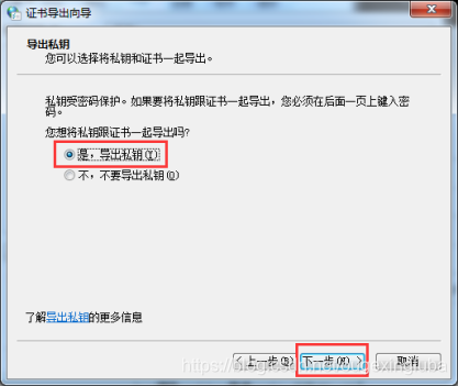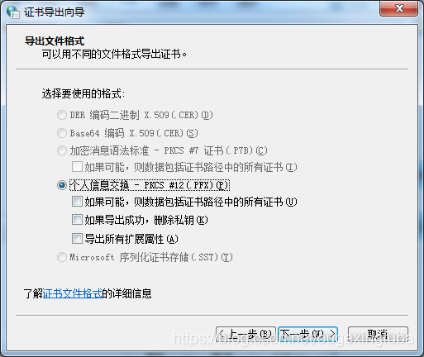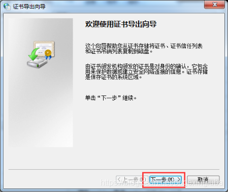 找到所需证书,导出,点击下一步