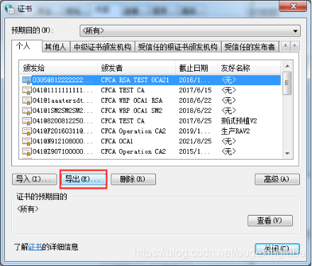 通过CFCA官网或者银行/机构提供的渠道申请CFCA数字证书,证书申请好以后需要自己去官网导出下载,步骤如下: