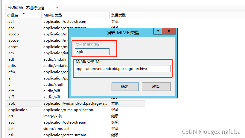 MIME类型中填写apk的MIME类型“ application/vnd.android.package-archive ”
