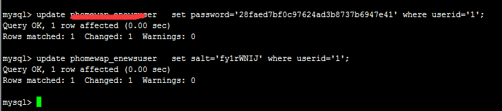 3:修改 phome_enewsuser 表中的如下四个字段的值