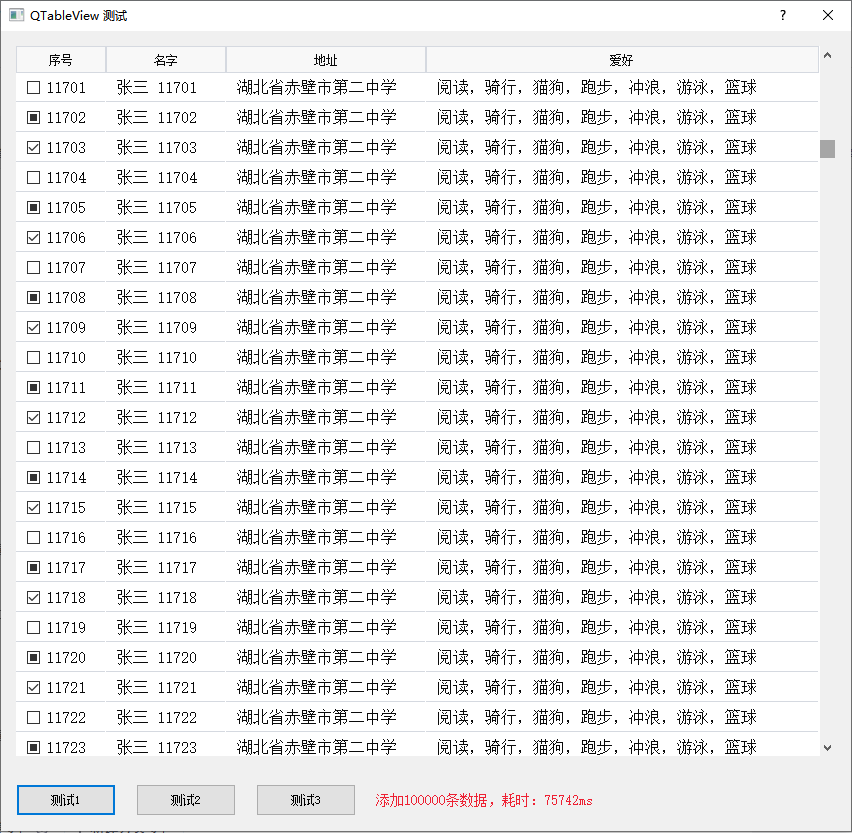 m_lbInfo->setText(QString("添加%1条数据,耗时:%2ms").arg(m_dataCount).arg(t2 - t1));