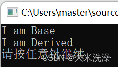 //因为Base有虚析构函数(virtual ~Base(){}),所以delete时,会先调用派生类(Derived)析构函数,