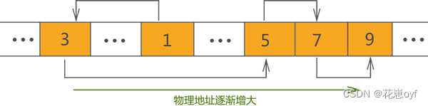 我们知道,使用顺序表(底层实现靠数组)时,需要提前申请一定大小的存储空间,这块存储空间的物理地址是连续的,如上图所示