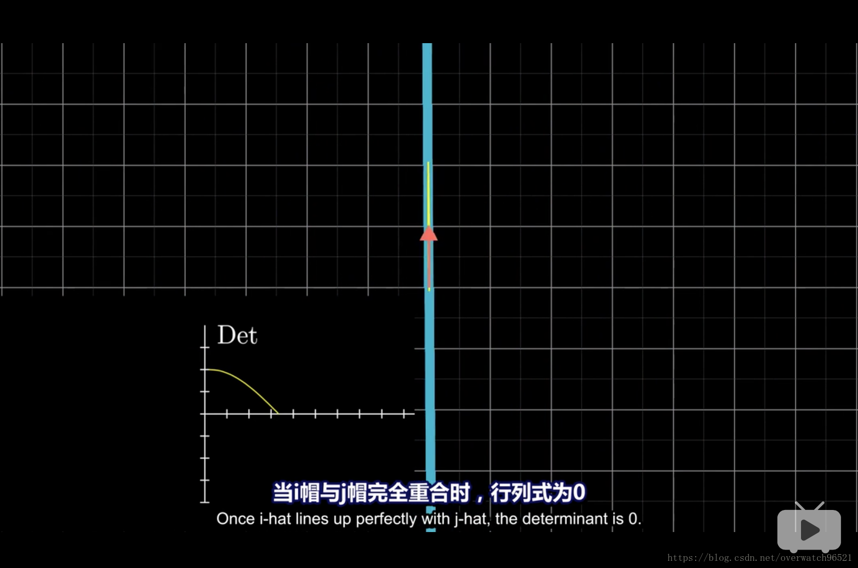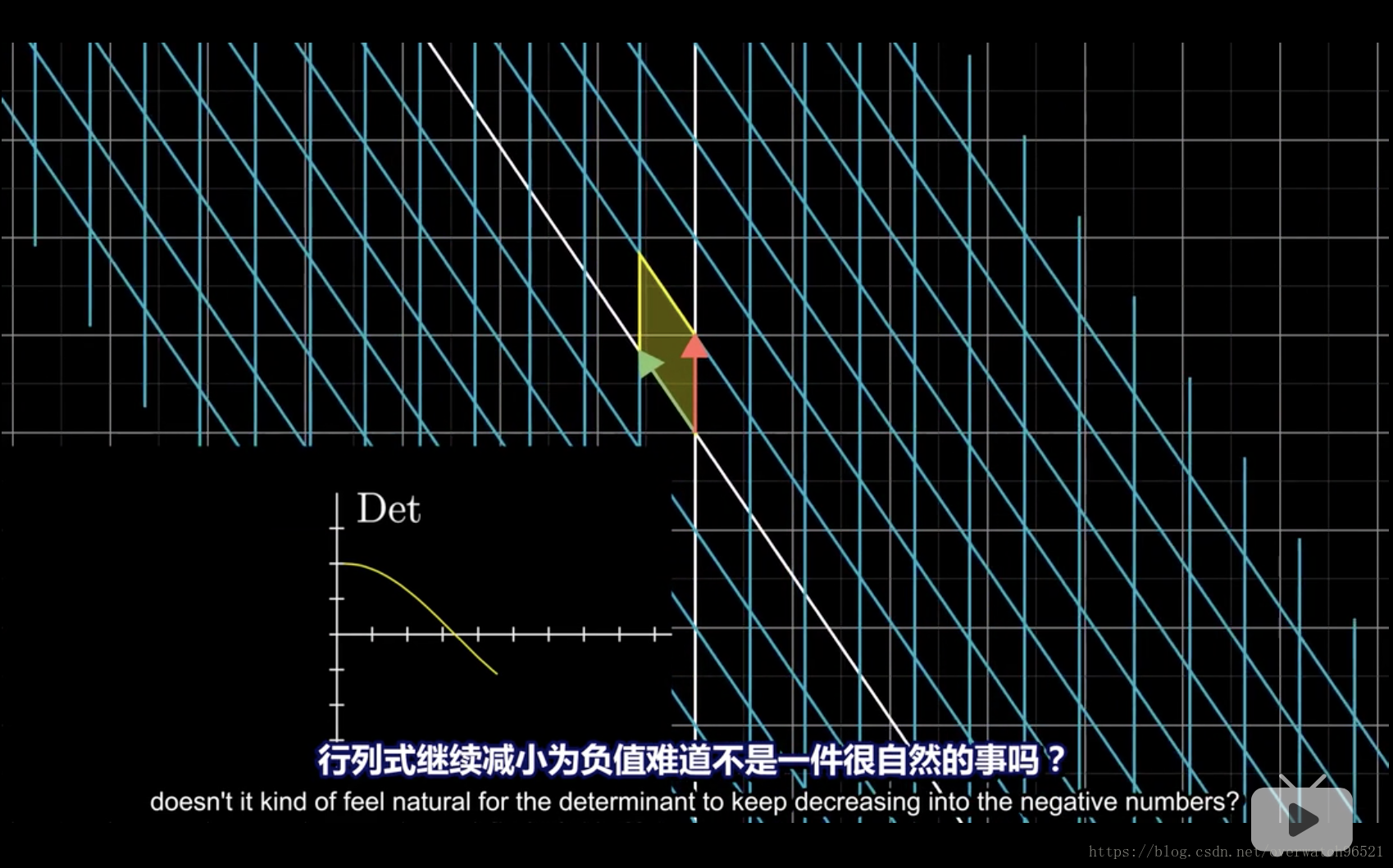 空间定向发生改变的过程就是i向量接近j向量至重合,然后又远离j向量的过程,在这个过程中,空间先被挤压到一条直线(以二维空间为例),然后又被放大。(我觉得就是为了区别与直接对空间放大,所以这种先挤压在放大的变换,行列式为负值)