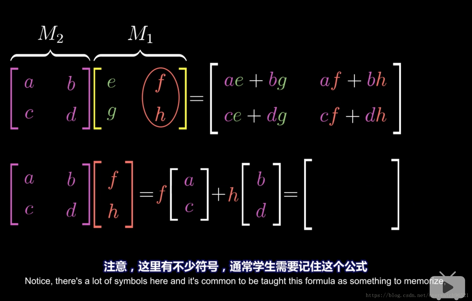 解析“线性变换”这一术语。“变换”实际上就是函数,它接受输入内容并输出对应结果,而在线性变换中输入的是向量,输出的也是一个向量,这中间的这个函数就是变换矩阵。