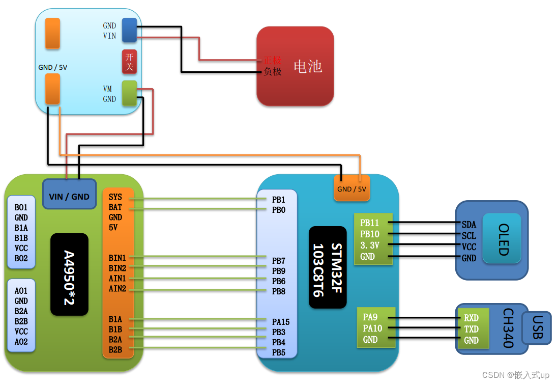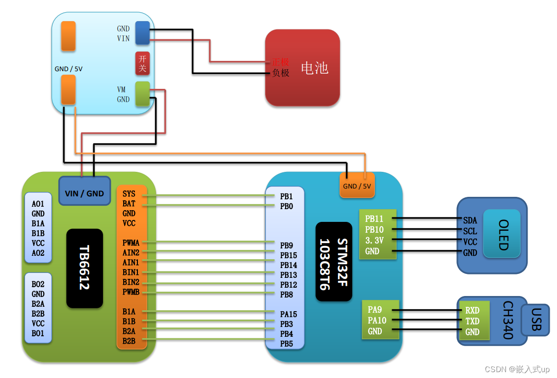 基于Stm32F103VET6的车辆辅助系统,主要分为以下几个部分: