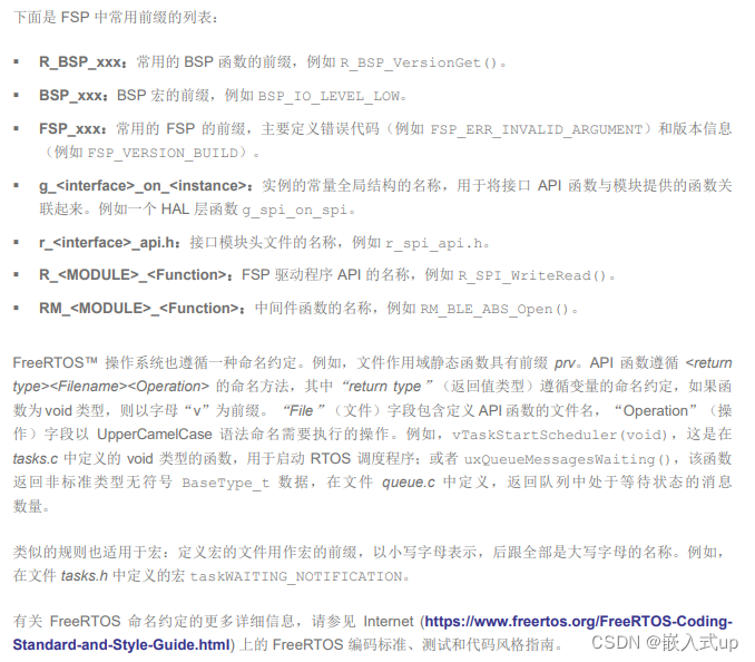 FSP 是开源软件,提供完整的源代码,但仅限用于瑞萨的硬件。 除了上述软件外,FSP 还采用 Amazon 的 FreeRTOS® 作为实时操作系统。此系统可通过符合 Cortex 微控制 器软件接口标准 (CMSIS) 的 Arm RTOS 接口进行访问。借助此标准接口,软件工程师能够使用其选择的任何 RTOS,而不会失去 FSP 的优势。