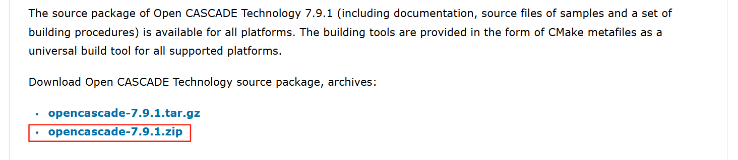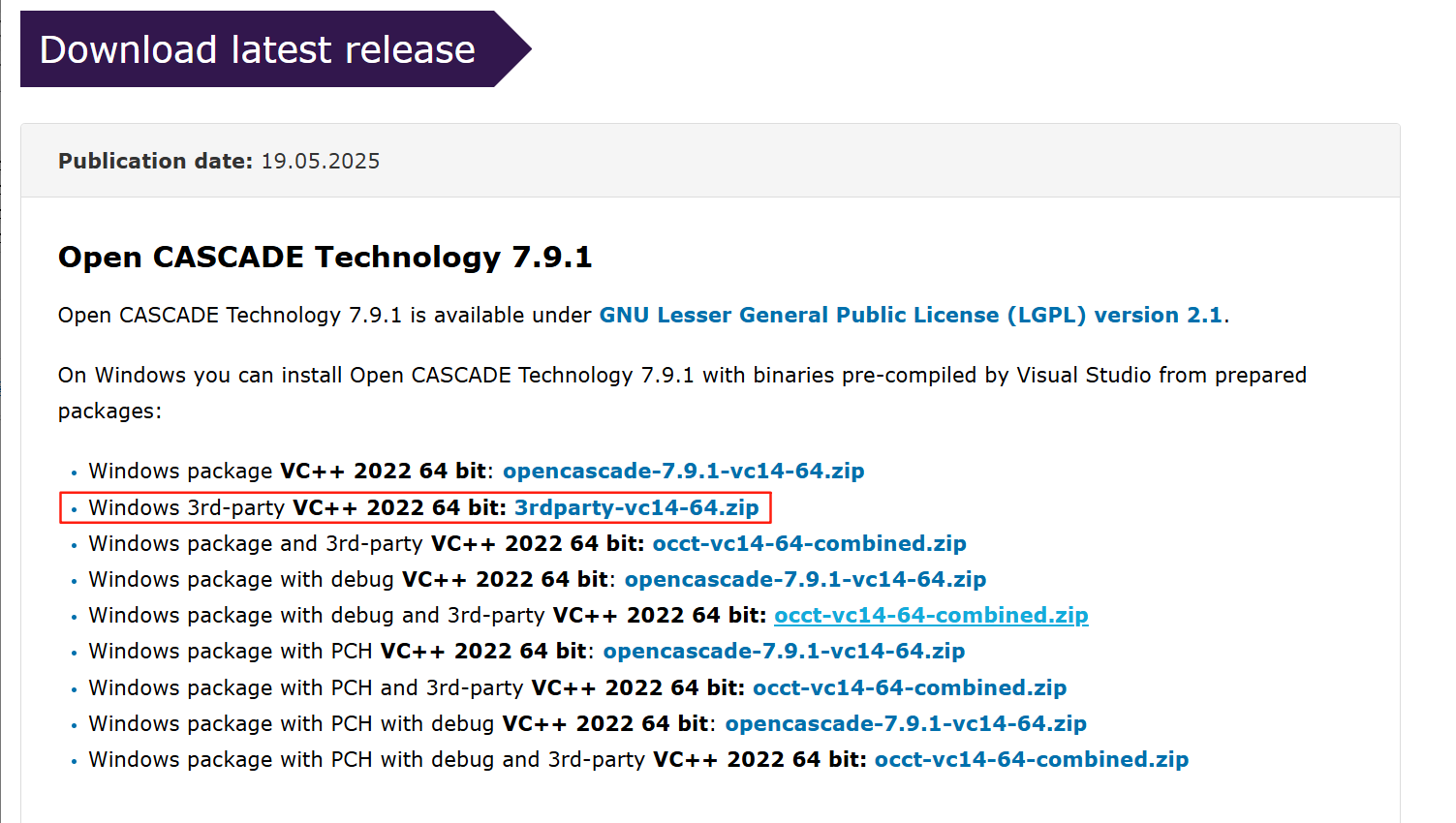 找到OCCT及对应依赖库的版本号并下载,我的是OCCT-7_9_1和3rdparty-vc14-64:
