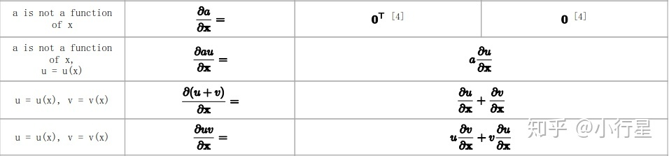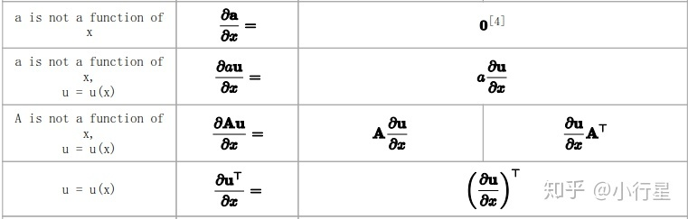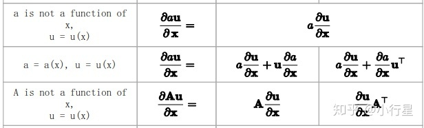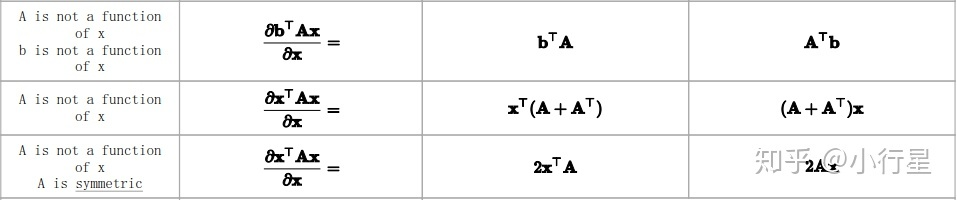 常见的对向量或矩阵求导并非上面的定义中的简单求导,一般都是带有系数或为复合函数,如回归中(Ax-b)^2对x求导,A为矩阵,x,b为向量。希望得到相关恒等式。以下恒等式均可以通过原始定义得到。