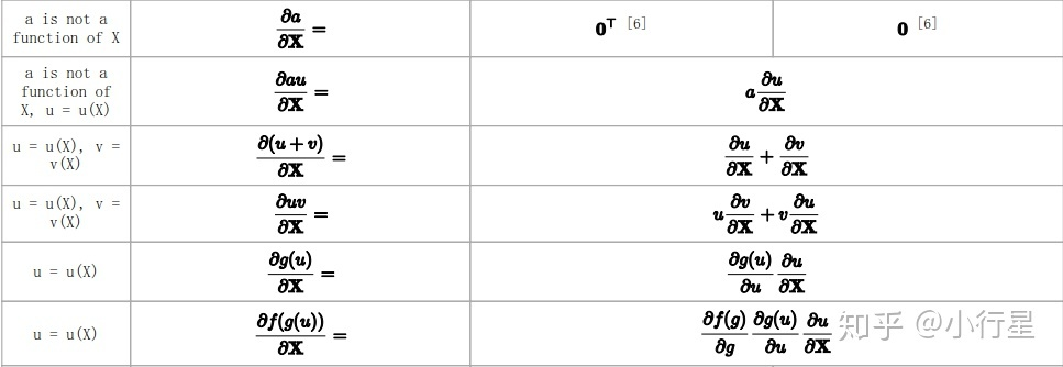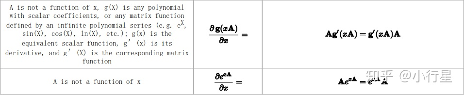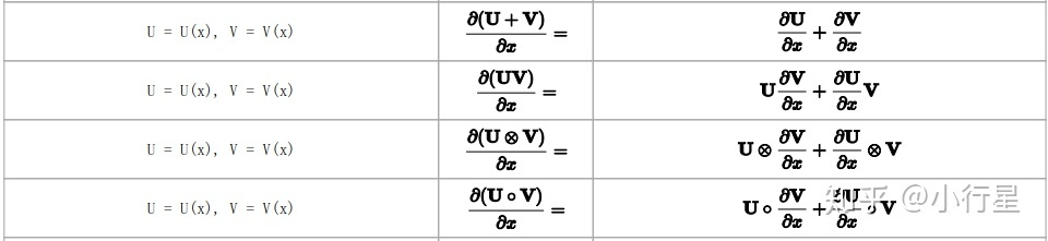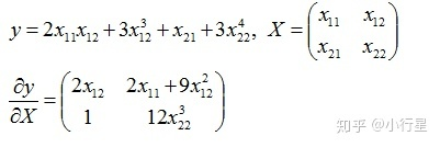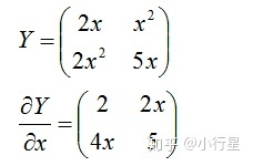 还可以看到- by - Scalar时,y的每个元素是关于这个标量x的函数;- by -Vector时,y的每个元素是关于Vector中所有元素的函数,当然某些元素的系数可能为0;- by -Matrix时,y的每个元素是关于Matrix中所有元素的函数。总之y的每个元素是关于x所有的元素的函数。