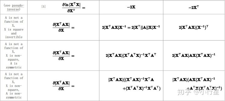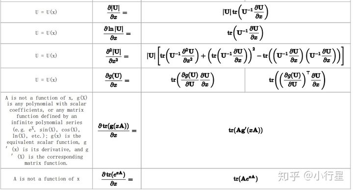 矩阵得到标量常用的是其行列式或迹,也可以用其它函数映射为标量,上面的第4行中的g(X)为